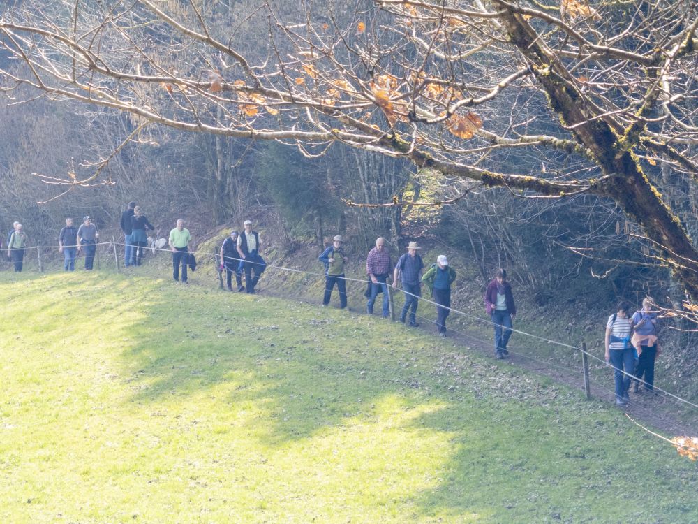 Bei allerbestem Frühlingswetter wanderte der Schwarzwaldverein Wolfach am vergangenen Sonntag mit fast sechzig Hüttendienstlern vom Vereinsheim übers Ehrenmal und den Otto-Bührer-Pfad zur Panoramaaussicht am Spitzfelsen und dann weiter über die Dohlenbacher Höhe und das Weiße Kreuz zum Käppelehof im Osterbach. In einer kurzen Begrüßung dankte die Vorsitzende Milena von Zelewski den anwesenden Hüttendienstlern für Ihr Engagement und die geleisteten Stunden auf der Hohenlochenhütte in den beiden vergangenen Jahren und berichtete von „115 Vereinsmitgliedern, welche Schriftführerin Rosi Wolber zum Termin eingeladen hätte und von denen sie die Hälfte heute hier begrüßen dürfe“ und händigte allen als Dankeschön einen Verzehrgutschein aus. Nach einigen schönen Stunden erfolgte am späten Nachmittag in kleinen Gruppen der Rückweg nach Wolfach.