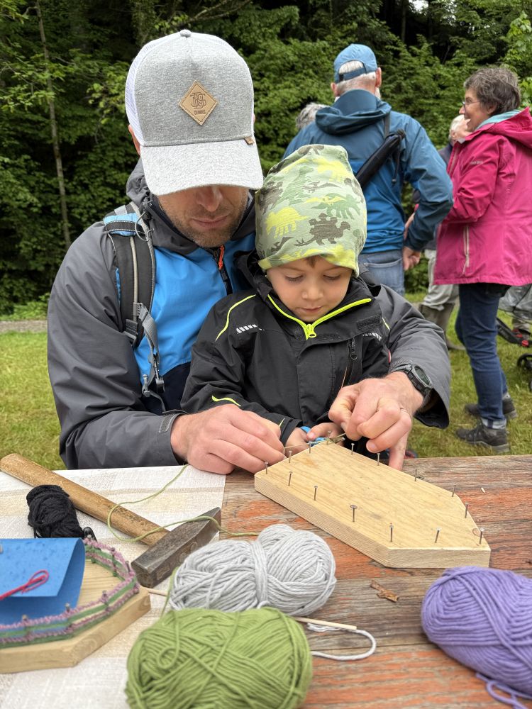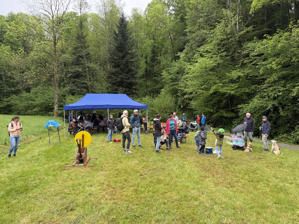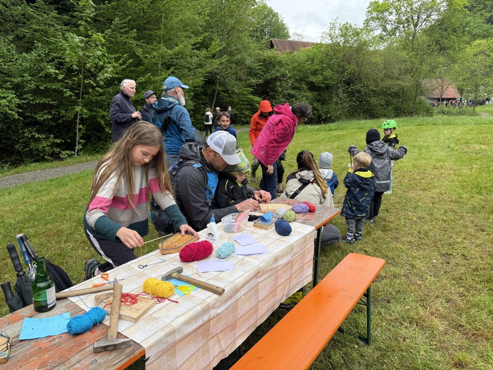 Anlässlich der Feier „750 Jahre Kirnbach“ bewirtete der Schwarzwaldverein Wolfach auf der gemähten Wiese von Familie Aberle neben dem Martinsbrünnele. Es gab „Schupfnudeln mit Sauerkraut“ und Getränke. Daneben hat sich unsere Familiengruppe wieder einiges für die Jüngsten und Kleinsten einfallen lassen: Neben dem Basteln von Holzbooten mit Segeln – auf dem Zufluss zur Jockelesmühle gleich erfolgreich getestet und der Renner schlechthin – gab es weiterhin eine Schokokuss-Wurfmaschine und es konnten Seifenblasen erzeugt werden. Leuchtende Augen und strahlende Gesichter waren der Lohn für das Team vom Schwarzwaldverein.