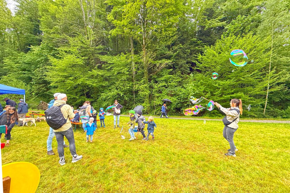 Seifenblasen, Schokokuss-Wurfmaschine und Holzboote