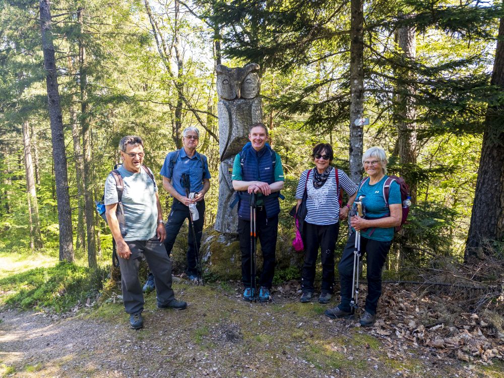 Eine kleine Gruppe von sechs Teilnehmern traf sich am 26. April, um mit Wanderführer Thomas Gudelius den ersten Teil des Gutacher Schanzenwegs von Gutach nach Hornberg zurückzulegen. Zunächst führte uns der schweißtreibende Anstieg durchs linke Sulzbachtal hinauf zum Bücherneck. Nach Überqueren der Passhöhe zwischen Gutach und Oberprechtal wanderten wir im Wald, entlang alter Wälle, steil bergauf bis zur verdienten Mittagspause an der gemauerten Schanze am „Höchst“. Wir folgen nun aussichtsreich dem Querweg Lahr-Rottweil, um an der Hirschlachschanze vorbei nach einem Abstieg den Huberfelsen zu besteigen, und auch von dort oben die Aussicht zu genießen. Über den Fährlefelsen erreichten wir das Offenbacher Eckle, wo wir eine weitere kurze Trinkpause einlegten. Es folgte der wandertechnisch schönste Teil des Tages. Um Schnallenkopf und Holderkopf herum ging es auf schmalen Pfaden bis zum kurzen, aber sehr knackigen Anstieg auf den Ziegelkopf, mit eindrucksvollem Tiefblick auf Hornberg. Über Uhufelsen und Schloss-Schanze ging es in zahlreiche Serpentinen erst zum Schloss Hornberg und dann hinunter zum Bärenplatz. Der Bus brachte uns zurück nach Gutach, ehe die Schlusseinkehr in Weber‘s Esszeit eine Wanderung mit zahlreichen historischen, landschaftlichen und sportlichen Höhepunkten abschloss.