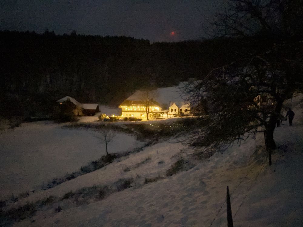 Vierzehn Wanderer trafen sich am 3. Januar an der P&R-Anlage am Wolfacher Bahnhof zur Nachtwanderung in Hausach. Vom Parkplatz am Minigolfplatz ging es bei starkem Schneefall und perfekter Winterstimmung hinauf zum Käppelehof, der die Teilnehmer in dunkler Nacht mit warmem Licht im obersten Osterbach empfing. Nach der Einkehr in der behaglichen Stube und zahlreichen guten Gesprächen bei Familie Armbruster galt es für die Teilnehmer einen letzten Anstieg bis zum Osterbachsattel zurückzulegen. Der Schneefall hatte zwischenzeitlich aufgehört und es bildeten sich mehr und mehr Wolkenlücken, aus denen der Vollmond hervorschaute. Über schmale Waldpfade erfolgte der Weiterweg im Licht der Stirnlampen, ehe sich der Gruppe oberhalb vom Vordersbergerhof aus tolle Rundblicke über das winterliche Kirnbach~, Gutach~ und Kinzigtal boten. Ein letzter Abstieg durchs Hegerfeld führte zurück zum Ausgangspunkt, von wo aus glückliche und zufriedene Wanderer den Heimweg antraten.