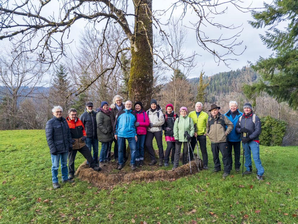 Die Abschlusstour unserer Wochentagswanderer führte eine vierzehn Teilnehmer starke Gruppe um Wanderführerin Milena von Zelewski vom Flößerpark durch Wolfach hindurch hinauf in den Bereich Siechenwald/Riegelsberg, wo eine gut gelaunte Wandertruppe gegen 16:00 Uhr von zwei Vorstandsmitgliedern mit einer Einkehr bei Glühwein und Punsch, Christstollen und Weihnachtsgebäck empfangen und bewirtet wurde. Nach einem schönen Sonnenuntergang ging es für die Gruppe mit der einsetzenden Dunkelheit zurück nach Wolfach und schloss die Wandersaison 2025 ab.