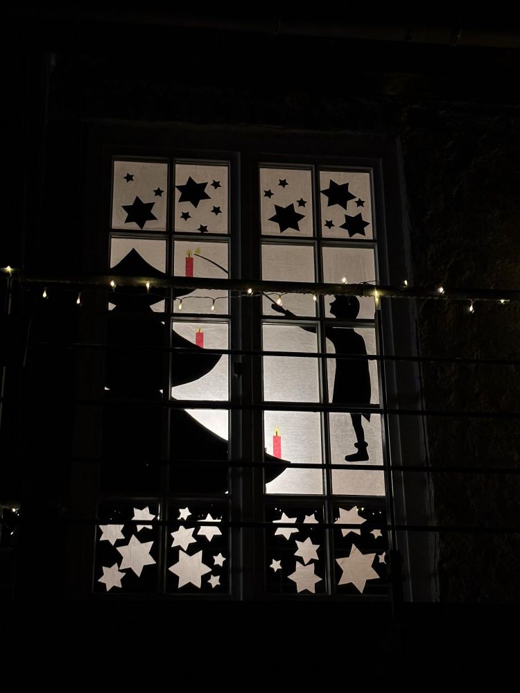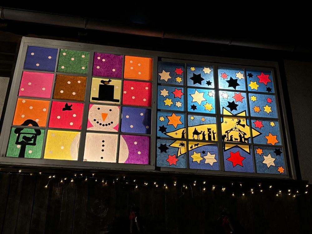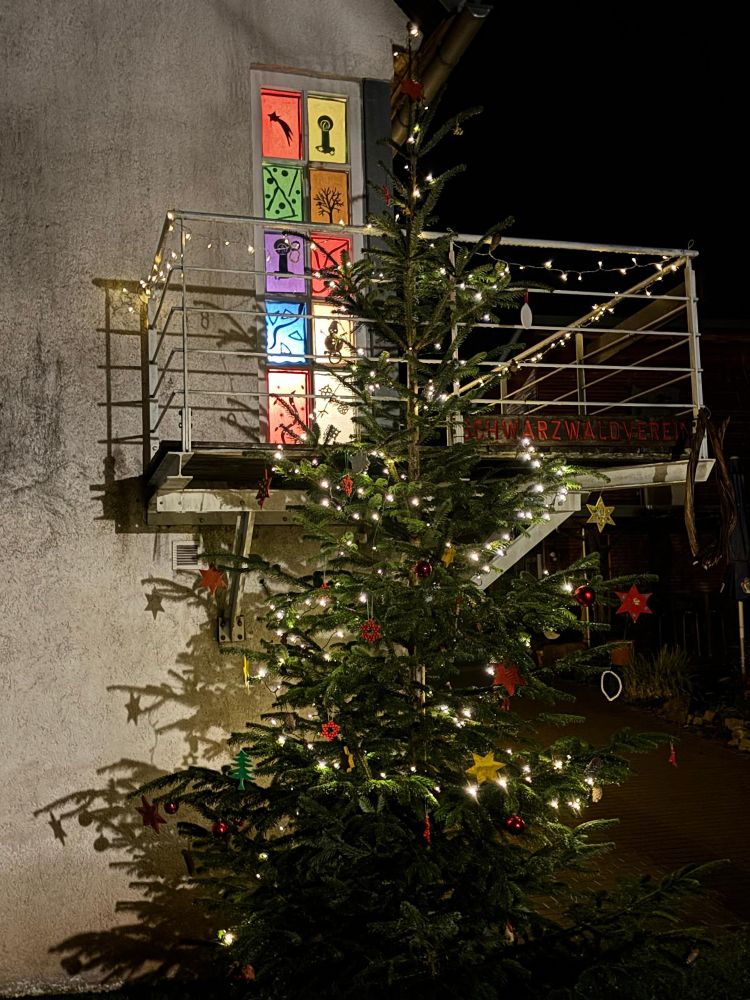 Wie schon in den Vorjahren hat der Schwarzwaldverein Wolfach das Vereinsheim mit weihnachtlichen Motiven dekoriert. Die farbig gestalteten Fenster werden zeitschaltuhrgesteuert von innen angestrahlt und vermitteln eine schöne weihnachtliche Stimmung. Auf der zum Flößerpark hin gewandten Seite steht der aufgestellte Weihnachtsbaum sowie hängt an der Hauswand ein großer beleuchteter Holzstern. Schauen Sie bei einem abendlichen Spaziergang an unserem Vereinsheim vorbei und besuchen Sie das weihnachtliche Idyll. Auf der Vorderseite hat das Vereinsheim-Weihnachts-Dekorationsteam die Fenster mit farbigen, weihnachtlichen Motiven verkleidet.