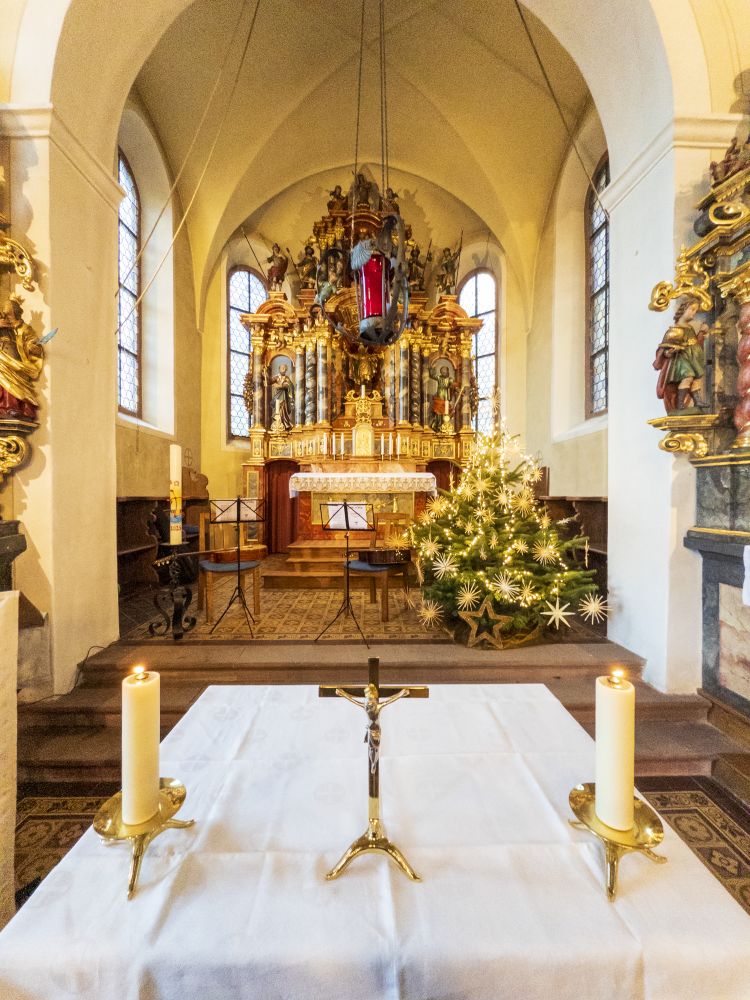 In der kleinen schmucken Wallfahrtskirche St. Jakobus, wie jedes Jahr wunderschön weihnachtlich hergerichtet, wurden die Besucher von der Vorsitzenden Milena von Zelewski zur 14. Waldweihnacht begrüßt und herzlich willkommen geheißen. Ihren besonderen Dank sprach Sie den Organisatorinnen Nadja Schafheutle, für die Planung und Umsetzung des musikalischen Programms, und Annette Schamm für die Gesamtorganisation aus. Sie trug auch die Weihnachtsgeschichte über den Streit der Farben des Regenbogens vor.