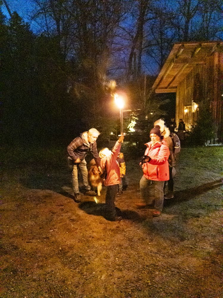 Die Ortsvereinsvorsitzende bedankte sich daran anschließend namentlich bei allen Mitwirkenden der besinnlichen Weihnachtsfeier und leitete mit dem Wunsch von schönen Weihnachten den zweiten Teil der Waldweihnacht am Flößerschuppen ein, wo die Helfer um Siegfried und Stefan Brückner, Anton Jehle und Thomas Mosmann bereits Glühwein, Kinderpunch und Weihnachtsgebäck wie auch das obligatorische Lagerfeuer vorbereitet hatten. Nach Einbruch der Dunkelheit machten sich die Besucher dann im Schein von Fackeln und Stirnlampen auf den Heimweg zurück nach Wolfach.